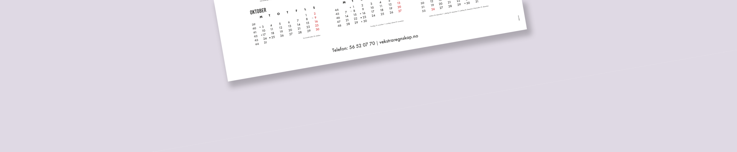 Store kalendarar der dei tilsette kvart år bidrar med flotte foto. Glynt leverar kalender med opphengslister og papphylser om ynskjeleg.